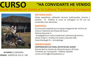 Curso: A convidarte he venido. Nuevas miradas en torno a la Cultura Tradicional Campesina viene siendo impartido por el equipo integrante del Archivo de Cultura Tradicional de Artistas del Acero (Chile).