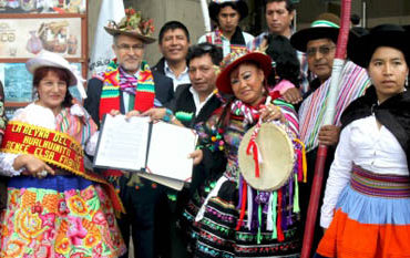 Una delegación de personalidades y artistas huancavelicanos llegó a la sede central del Ministerio de Cultura para recibir, de manos del viceministro de Patrimonio Cultural e Industrias Culturales Rafael Varón Gabai, la Resolución Viceministerial Nº 050-2012-VMPCIC-MC que declara a la Fiesta del Santiago de Tayacaja como Patrimonio Cultural de la Nación.