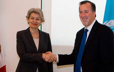 La Directora General de la UNESCO, Irina Bokova, se reunió el 14 de marzo con el canciller mexicano, José Antonio Meade Kuribeña, con quien habló acerca de la agenda bilateral UNESCO/México. La reunión se centró en la colaboración que proporciona la UNESCO en materia educativa en temas como la evaluación, el desarrollo curricular y la prevención de la violencia juvenil.