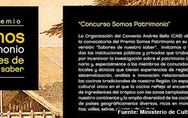 El convenio Andrés Bello invita todas las instituciones públicas y privadas y miembros de la sociedad civil, que trabajan por incentivar la investigación sobre el patrimonio culinario y tengan experiencia en registro, sistematización, análisis e innovación relacionados con las cocinas tradicionales de la región, a participar en la convocatoria del Premio “Somos Patrimonio”.