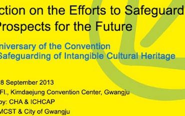 Del 27 al 29 de septiembre de 2013, en la ciudad de Gwangju, República de Corea, se realizará la Conferencia Internacional sobre la ejecución de las tareas Convención 2003: Reflexiones en torno a los esfuerzos para salvaguardar el patrimonio cultural