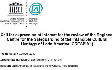 Convocatoria para la evaluación del Centro Regional para la Salvaguardia del Patrimonio Cultural Inmaterial de América Latina