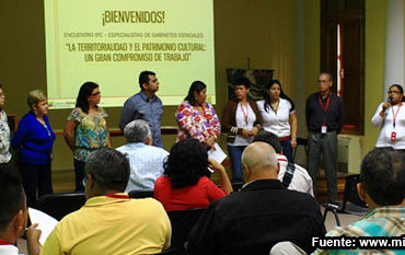 Con el propósito de realizar una inducción general a los especialistas de patrimonio que forman parte de los Gabinetes Estadales del Ministerio del Poder Popular para la Cultura, este miércoles 9 inició el encuentro nacional La territorialidad y el patrimonio cultural, un gran compromiso de trabajo, evento que servirá para debatir durante tres días.
