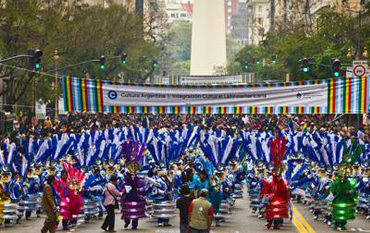 La comunidad boliviana de la Argentina homenajeó el 18 de octubre, en el centro porteño, a la Virgen de Copacabana, en el tradicional desfile por la Integración Cultural Latinoamericana, con la asistencia del vicepresidente de Bolivia, Álvaro García Linera, y la ministra de Cultura de la Nación, Teresa Parodi. \nUnas 150 agrupaciones y más de 20.000 bailarines participaron del desfile que rinde homenaje a la patrona de la colectividad boliviana.
