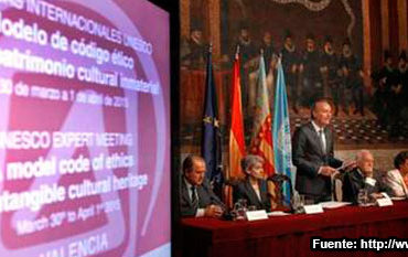 La Directora General de la UNESCO, Irina Bokova, inauguró el 30 de marzo en Valencia (España), una reunión de expertos para diseñar un modelo de código ético de salvaguardia del patrimonio cultural inmaterial. La sesión inaugural tuvo lugar en presencia del ministro español de Asuntos Exteriores, José Manuel García-Margallo y Marfil, del presidente de la Generalidad Valenciana, Alberto Fabra, y de la alcaldesa de Valencia, María Rita Barberá Nolla.
