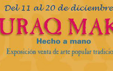 Por noveno año consecutivo, la exposición venta de arte tradicional peruano Ruraq maki, hecho a mano, abrirá sus puertas en esta Navidad para ofrecer al público los mejores trabajos de los más reconocidos artesanos del país en las Salas Nasca y Kuélap de la sede central del Ministerio de Cultura del Perú. Del 11 al 20 de diciembre, más de 100 colectividades de talladores, tejedores, ceramistas y otros representantes del arte popular peruano de las diversas regiones del Perú estarán reunidos en Ruraq maki.