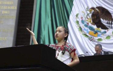 Este 30 de abril, la niña Guadalupe Flores leyó el poema en lengua náhuatl “India me llama la gente”, del autor Rolando Ramírez Chávez, con lo que concluyó la primera etapa de la iniciativa “Las lenguas toman la tribuna” durante el cierre del segundo periodo ordinario de sesiones en la Cámara de Diputados.