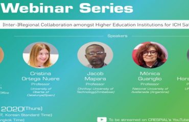 Coorganizado por el Centro Internacional de Información y Redes para el Patrimonio Cultural Inmaterial en la región de Asia y el Pacífico, bajo los auspicios de la UNESCO (ICHCAP) y la Oficina de la UNESCO en Bangkok, la serie de seminarios web de ICH cuenta con expertos en el campo de ICH y está abierta al público. En esta sesión, la Secretaría Técnica del CRESPIAL será la encargada de hacer la apertura al webinar, hablando del trabajo conjunto de los centros de Categoría 2 de la UNESCO en sus respectivas regiones, y resaltando la importancia de abordar la temática del patrimonio cultural inmaterial dentro de la academia. Adicionalmente, se contará con la participación de la Red de Cooperación Académica en PCI de Latinoamérica y el Caribe- ReCa PCI-LAC, iniciativa apoyada por el CRESPIAL con el objetivo de posicionar el PCI en el ámbito universitario y contribuir al establecimiento de alianzas intersectoriales que fortalezcan la formulación e implementación de políticas culturales en la región.