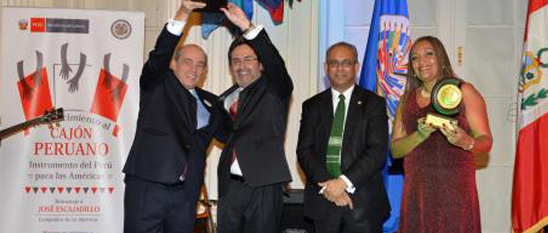 La Organización de los Estados Americanos (OEA) declaró el cajón peruano como ‘Instrumento del Perú para las Américas’ en una ceremonia realizada el sábado 1 de noviembre en la sede de este organismo. Rafael Santa Cruz y José Escajadillo fueron reconocidos por su aporte a la música en el hemisferio.