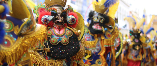 Al ritmo de las coloridas bandas, cerca de 45 miles de danzarines de conjuntos folklóricos entre morenadas, tinkus, caporales, diabladas, pujllay, entre otras danzas, hicieron gala del Carnaval de Oruro, Patrimonio Cultural Inmaterial de la Humanidad.