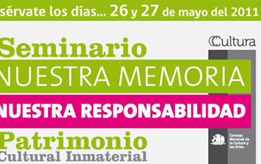 El Consejo Nacional de la Cultura y las Artes de Chile, invita al Seminario Nuestra Memoria, Nuestra Responsabilidad. Patrimonio Cultural Inmaterial, el cual se realizará en el Centro Gabriela Mistral –GAM los días 26 y 27 de mayo en Santiago. Chile.