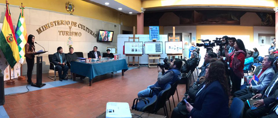 El Ministerio de Culturas y Turismo (MCyT) lanzará el próximo sábado 26 de mayo, la Plataforma web de protección, salvaguarda y defensa del Patrimonio Inmaterial de Bolivia, con el objetivo de defender el patrimonio cultural de Bolivia. La fecha coincide con la realización de la entrada folklórica del Gran Poder, según el anunció de la titular de esta cartera de Estado Wilma Alanoca Mamani.