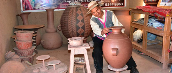 El proceso de producción de la cerámica de Raqchi es complejo, se inicia con la recolección de la arcilla que es seleccionada, molida, cernida y mezclada con agua y arena hasta lograr una pasta de fina textura.