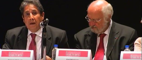 Luego de la conferencia, se realizó la primera mesa de expertos del Congreso, con el tema: Los desafíos en la implementación de la Convención UNESCO 2003 para la Salvaguardia del Patrimonio Cultural Inmaterial (PCI). En la mesa participaron Cécile Duvelle, Directora de la Secretaria del PCI de UNESCO, Chérif Khaznadar del Maison des Cultures du Monde (Francia), Noriko Aikawa-Faure, de la Agency for Cultural Affairs del Gobierno de Japón y Fernando Villafuerte Medina, Director General del CRESPIAL.