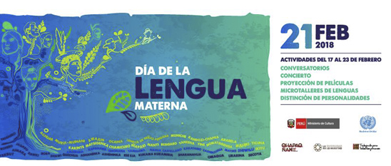El Ministerio de Cultura del Perú, convoca del 17 al 23 de febrero a diversas actividades en el marco del Día Internacional de la Lengua Materna. Se realizarán conversatorios, proyección de películas, microtalleres de lenguas, así como distinción a personalidades.