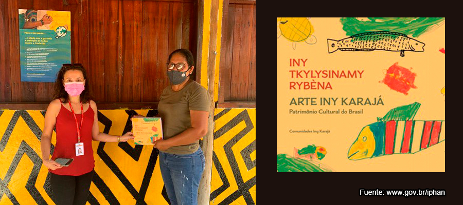 Composta por quatro capítulos, a publicação Arte Iny Karajá Patrimônio Cultural do Brasil, elaborada pelos próprios indígenas, apresenta temas que abordam a divulgação da cultura indígena de sete aldeias karajá, que se estendem pelos estados de Goiás, Tocantins, Mato Grosso e Pará; as celebrações e rituais; os ofícios, saberes e modos de fazer ritxoko (bonecas karajá); e os seus locais de habitação. Produzido na língua materna karajá e em português, as narrativas trazem os mitos e as histórias, que são ilustradas por meio de desenhos feitos e pintados pelas crianças indígenas, acompanhadas de professores das escolas locais.