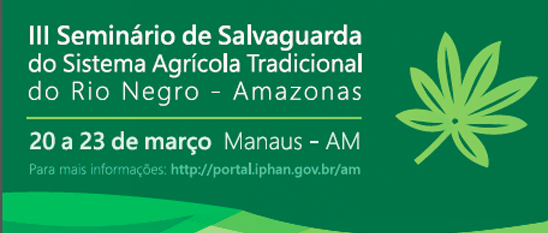 Entre os dias 20 e 23 de março, o Iphan-AM promove o III Seminário de Salvaguarda do Sistema Agrícola Tradicional do Rio Negro – Amazonas, que será realizado no Instituto Amazônia, em Manaus. O encontro tem objetivo de debater as ações e soluções de preservação e sustentabilidade do Sistema Agrícola Tradicional do Rio Negro, e contará com a participação dos membros da comunidade indígena detentora do bem, o Conselho da Roça e parceiros envolvidos.