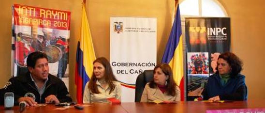 \r\n Con la presencia de la Directora del INCP Regional 6, María Arévalo, la Gerente del Complejo Arqueológico Ingapirca, Catalina Tello, el Presidente de la Junta Parroquial de Ingapirca, Sr. Ángel Calle y la Gobernadora de la provincia del Cañar, Bertha Molina, se presentó la Agenda de eventos que se llevarán a cabo por el Inti Raymi Ingapirca, 2013.