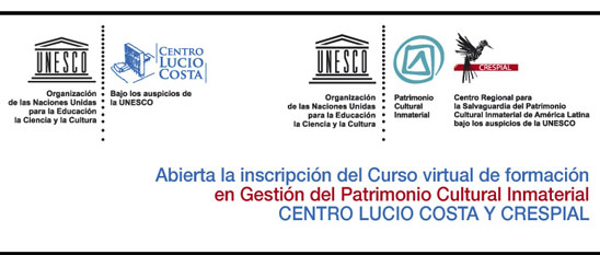 Hasta el 30 de enero de 2015, se encontró abierta la inscripción al Curso virtual de formación en Gestión del Patrimonio Cultural Inmaterial (PCI), un esfuerzo conjunto del Centro Lucio Costa (CLC) y del CRESPIAL, con el apoyo de la UNESCO y la coordinación técnica de INSPIRE – educación a distancia.