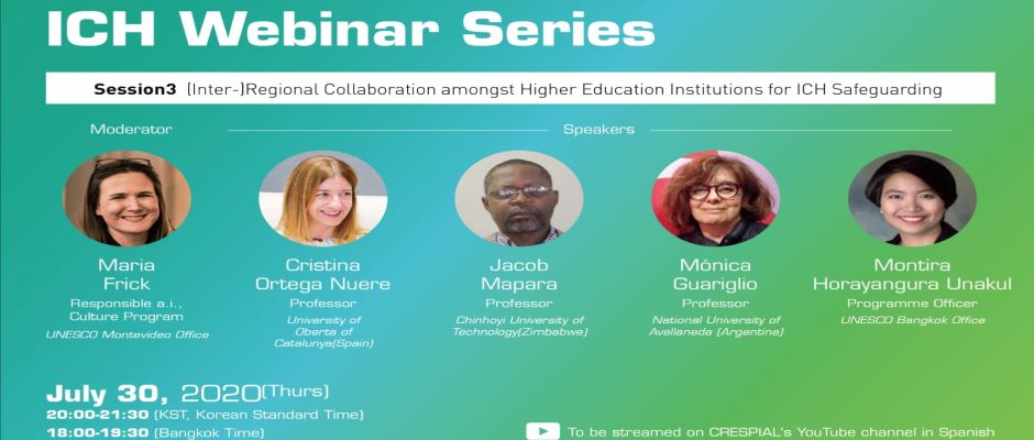 Sesión 3: Colaboración (inter) regional entre instituciones de educación superior para la salvaguardia del PCI (30 de julio de 2020).