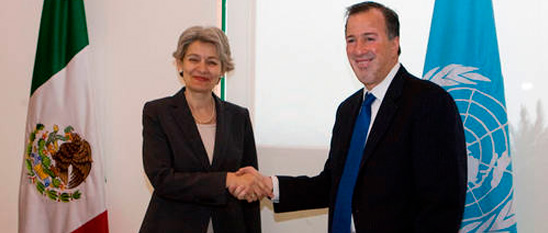 \r\n La Directora General de la UNESCO, Irina Bokova, se reunió el 14 de marzo con el canciller mexicano, José Antonio Meade Kuribeña, con quien habló acerca de la agenda bilateral UNESCO/México. La reunión se centró en la colaboración que proporciona la UNESCO en materia educativa en temas como la evaluación, el desarrollo curricular y la prevención de la violencia juvenil.