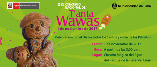 El Ministerio de Cultura organiza el XXI Concurso Nacional de T’anta Wawa, con el objetivo de difundir el pan tradicional y emblemático del Perú como parte de las tradiciones gastronómicas y artísticas populares tradicionales, ampliar los conocimientos sobre ellas, promover el intercambio de conocimientos entre los artesanos de las diferentes regiones del país e incrementar su continuidad y consumo entre los peruanos.