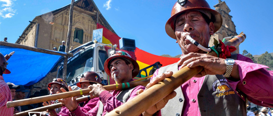 Con la tradicional tonada de la mohoza, instrumento autóctono que acompaña a la danza de la mohoseñada, se dio la bienvenida a la Ministra de Culturas y Turismo y a otras autoridades del departamento y municipio, a la Cumbre Nacional de la Mohoseñada desarrollada en la Comunidad de Mohoza, Provincia Inquisivi del departamento de La Paz, este sábado 3 de junio.