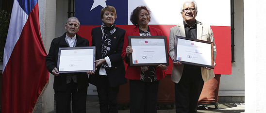 En una ceremonia en el Palacio La Moneda se otorgó la distinción a los integrantes del Conjunto de Proyección Folklórica Tabake, de Playa Ancha, Valparaíso, en Categoría Investigación; al organillero Héctor Lizana, en Creación, y a Elena Valdivia, en Formación.