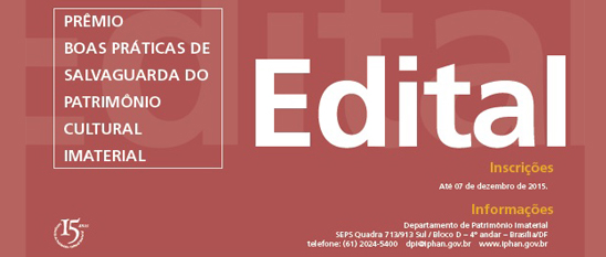 \r\n Novo período de inscrições para o Prêmio Boas Práticas de Salvaguarda do Patrimônio Cultural Imaterial, no âmbito do Programa Nacional do Patrimônio Imaterial – PNPI 2015, vai até o próximo dia 25 de janeiro de 2016.