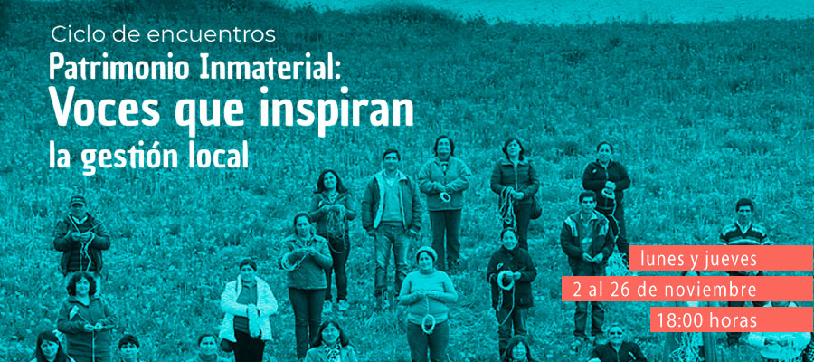 La Subdirección Nacional de Patrimonio Cultural Inmaterial, del Servicio Nacional de Patrimonio Cultural de Chile, dependiente del Ministerio de las Culturas, las Artes y el Patrimonio, invita a gestores del patrimonio, investigadores, estudiantes de ciencias sociales, organizaciones comunitarias y funcionarios públicos, y a toda la ciudadanía interesada, a participar en los encuentros abiertos “Patrimonio Inmaterial: Voces que inspiran la gestión local”, que se desarrollarán del 2 al 26 de noviembre, en vivo a través del Facebook Live de PatrimonioChile.