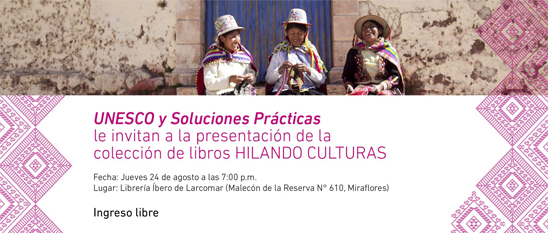 La ONG Soluciones Prácticas y UNESCO Lima, presentarán la colección de publicaciones Hilando Culturas, siete publicaciones que nos acercan a los orígenes, saberes y producción actual del arte textil en Perú y Bolivia.