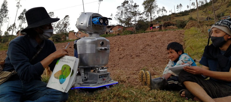 En un remoto poblado de los Andes del Perú, un profesor de ciencia y tecnología decidió fabricar una robot que habla quechua (lengua materna de la mayoría de sus alumnos) y español para que sus estudiantes no pierdan el año escolar, debido a que las clases presenciales están suspendidas a causa de la pandemia.