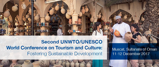 Del 11 al 12 de diciembre de 2017, en Omán, se realizará la Segunda Conferencia Mundial OMT / UNESCO sobre Turismo y Cultura, la cual reunirá a Ministros de Turismo y Ministros de Cultura, así como a interesados del sector privado y expertos, con el objetivo de construir y fortalecer asociaciones entre ambos sectores y mejorar su papel en la Agenda 2030 para el Desarrollo Sostenible de las Naciones Unidas.