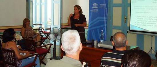 \r\n Como parte del programa del taller también tuvieron lugar disertaciones sobre el Programa de Comunicación e Información de la UNESCO, realizada por Isabel Viera, responsable de este sector en la Oficina de la UNESCO en La Habana, así como sobre las convenciones de la Organización relativas a la conservación del patrimonio cultural material e inmaterial en sus diversas expresiones, realizadas por Tatiana Villegas, Víctor Marín, Gilda Betancourt y Leire Fernández, especialistas del equipo de Cultura de la entidad.