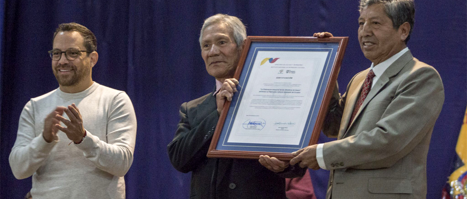 El Ministerio de Cultura y Patrimonio y el Instituto Nacional de Patrimonio Cultural (INPC) entregaron este viernes la certificación como ‘Patrimonio Cultural Inmaterial del Ecuador’ a los tejedores de alfombras del cantón de Guano, Provincia de Chimborazo, como un reconocimiento a la técnica artesanal constituida en una manifestación cultural de cientos de años y que se transmite de generación en generación.
